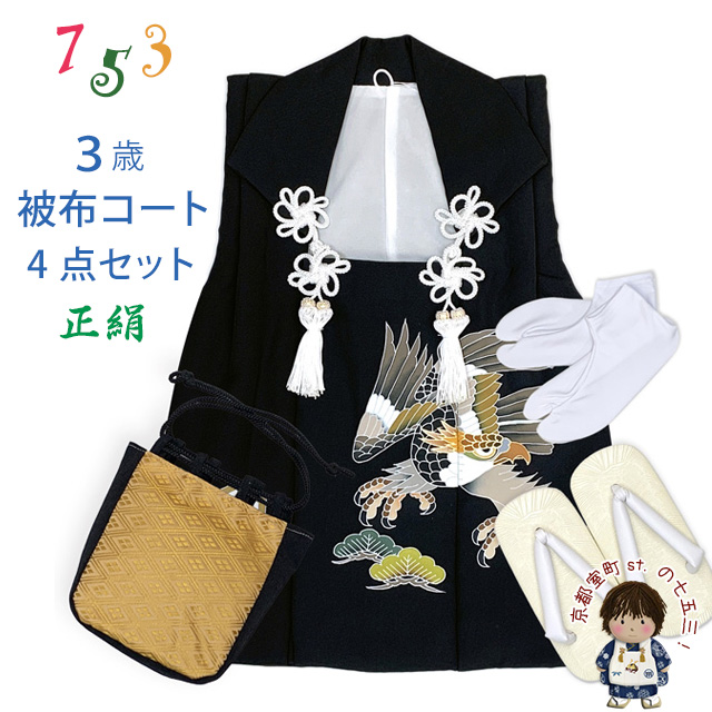 3歳男の子用の被布コート、草履、信玄袋、足袋の4点セットを追加しました。