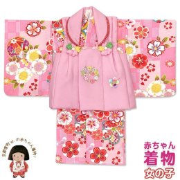 赤ちゃん用の二部式着物と被布コートのセット 女の子用