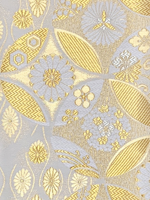 西陣織(子供)袋帯 高級 全通 仕立て上がり 北山 金つづれ 帯 十三参り 七五三に【生成り、金七宝】