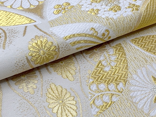 西陣織(子供)袋帯 高級 全通 仕立て上がり 北山 金つづれ 帯 十三参り 七五三に【生成り、金七宝】 [IJF1607]