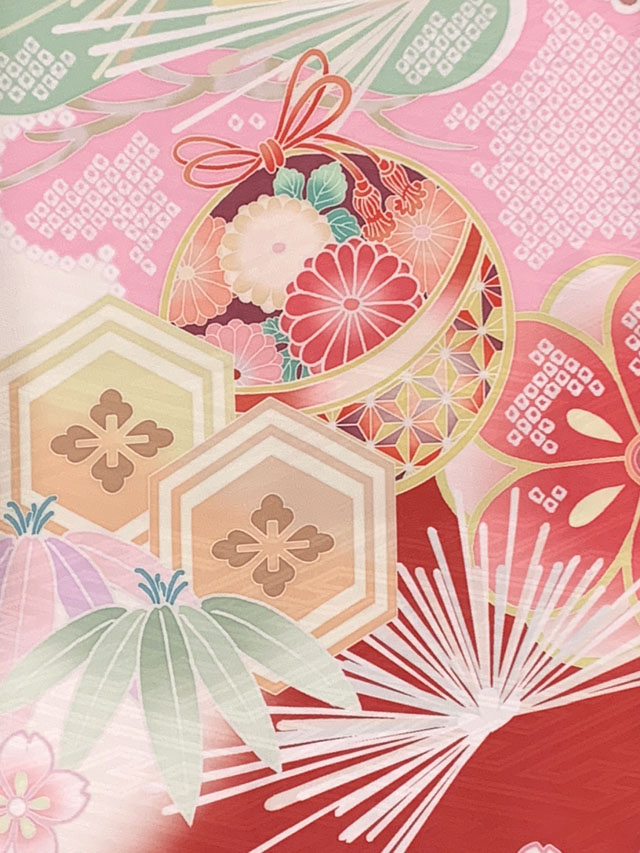 人気ブランド、式部浪漫の7歳用の四つ身の着物(襦袢付き)です。七五三やお正月の晴れ着にいかがですか。