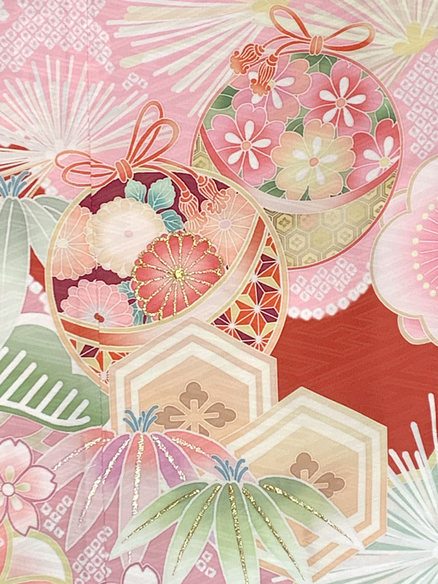 七五三 着物 7歳 女の子 2025年新作 式部浪漫ブランド 絵羽柄の着物 四つ身 子供振袖 単品 合繊【赤、鞠梅】 [SR7pea-2504tan]