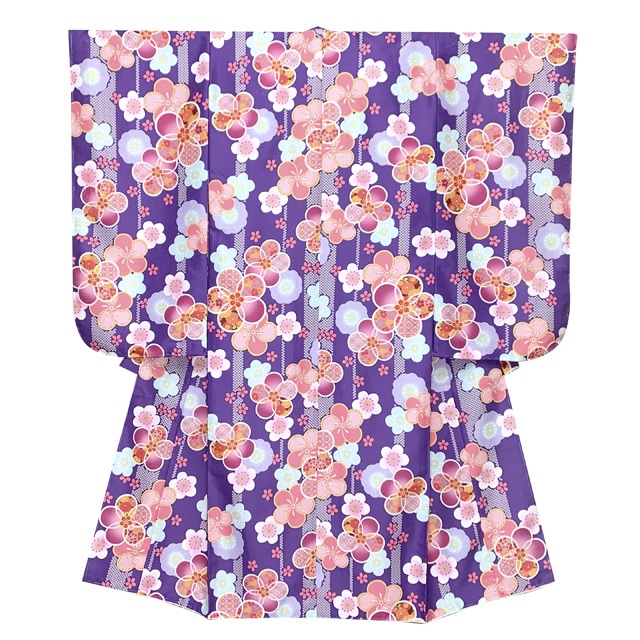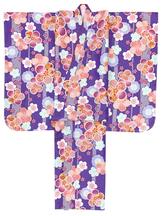七五三 着物 7歳 女の子用 四つ身の着物と結び帯 他 コーディネート フルセット【紫、古典桜】 [OYM-A803f2003KZZ]