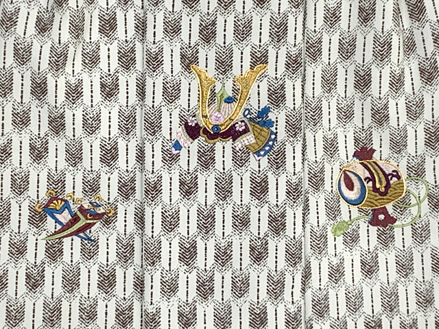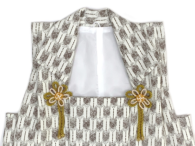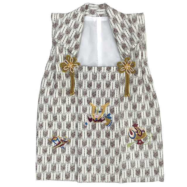 七五三 男の子 3歳 被布セット 被布コート 雪駄 信玄袋 足袋 4点コーデセット 合繊【生成り系、矢羽に兜と小槌】 [IBH491-set01]