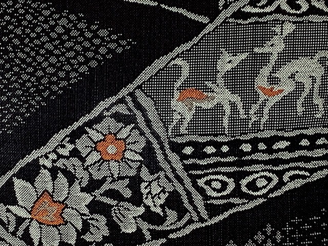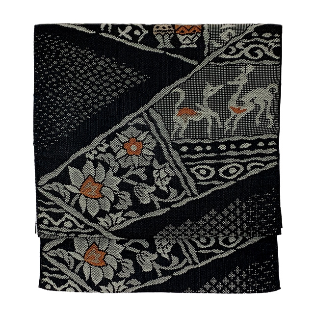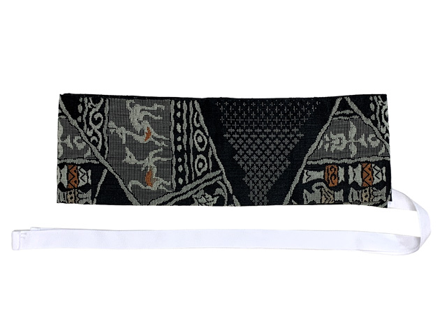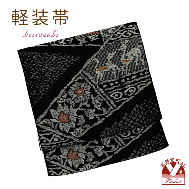 軽装帯 紬調 お太鼓結びの付け帯 合繊【黒系、バンビ】