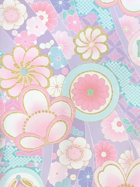 ジュニアサイズ 振袖 小紋柄 150サイズ 合繊 お正月 卒業式袴に【藤色xピンクx水色、熨斗】