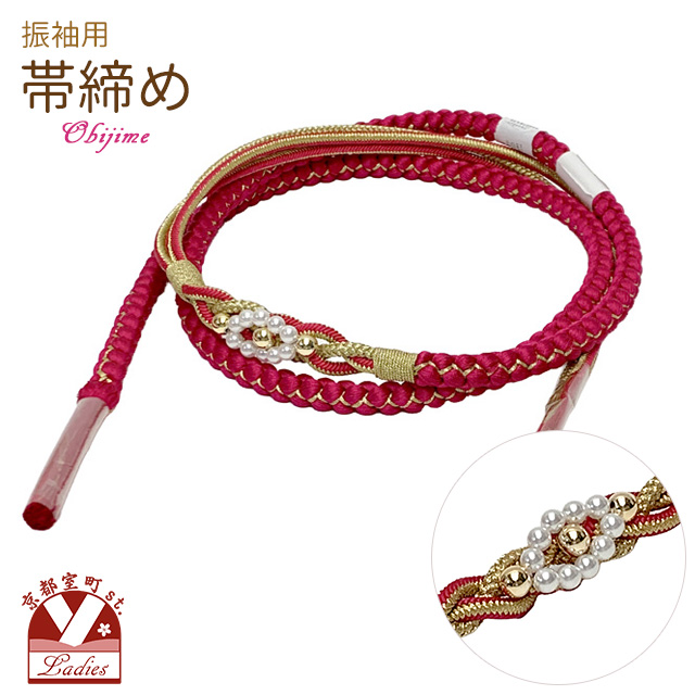 パールビーズの飾りをあしらった、お手頃価格の振袖用の丸組の帯締め(帯〆)です。成人式の振袖に合わせていかがですか?