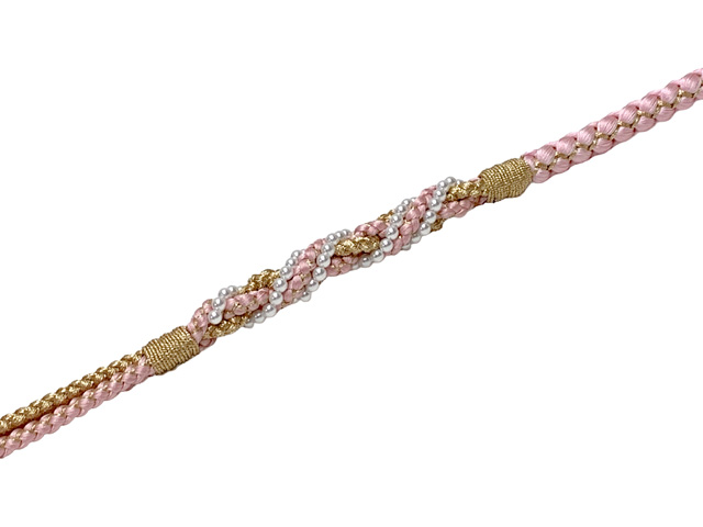 帯締め 振袖用 手組 パールビーズ飾り帯〆(正絹) 成人式 十三参りに【さくらピンク】