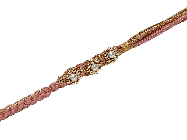 帯締め 振袖用 手組 パールビーズ飾り帯〆(正絹) 成人式 十三参りに【ピンク系xゴールド】 [FOJ579]