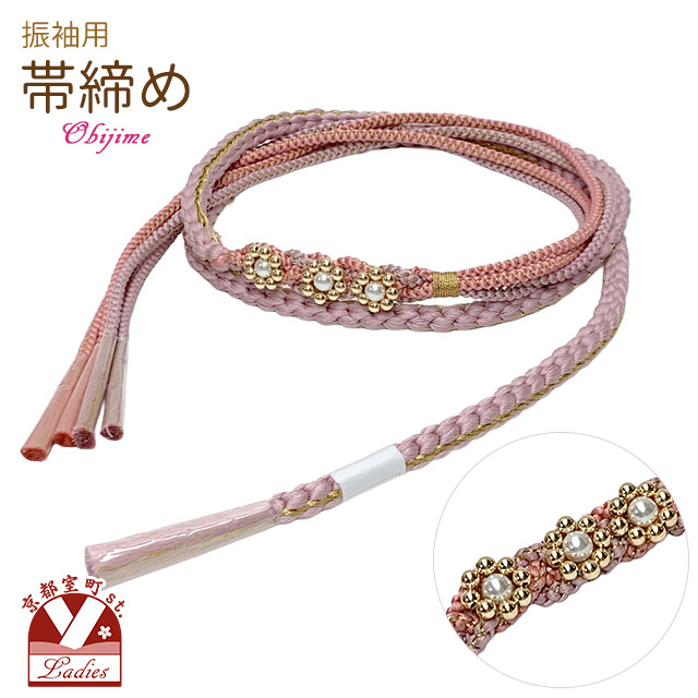 帯締め 振袖用 手組 パールビーズ飾り帯〆(正絹) 成人式 十三参りに【藤色系xピンク】 [FOJ580]