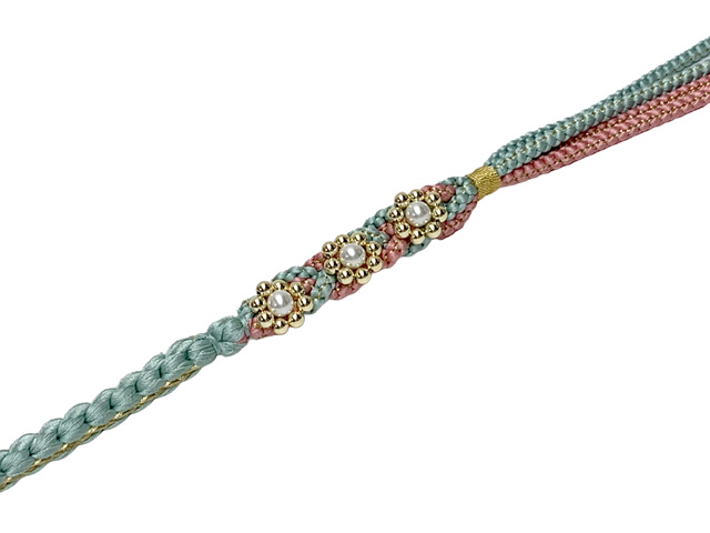 ツートンカラーにパールビーズの飾りをあしらった、お手頃価格の振袖用の丸組の帯締め(帯〆)です。