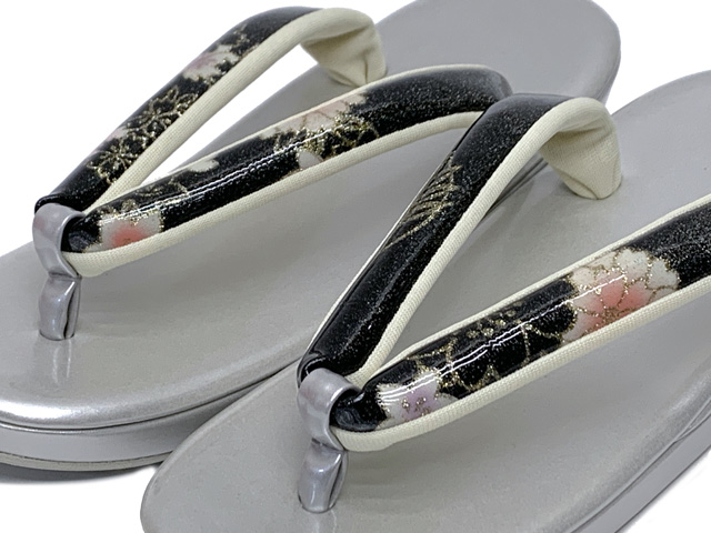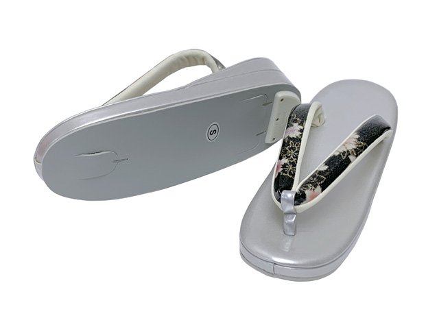 草履バッグセット 成人式 Sサイズ 2枚芯 の草履 和装バッグセット【黒x銀、桜とダリア】 [ZBS2603]