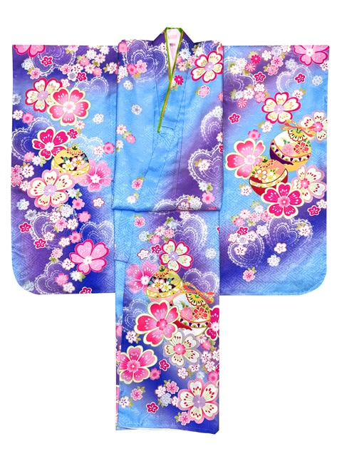 ホーム | 七五三 着物(女の子用) > 七五三 7歳 着物フルセット七五三 着物 7歳 セット 幻想的な柄の子供着物 結び帯コーデセット(合繊)【ファンタジー・ブルー、鈴と桜】