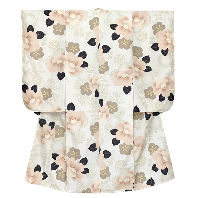 ホーム | 七五三 着物(女の子用) > 七五三 7歳 着物・振袖(合繊)七五三 着物 2025年新作 7歳 女の子用 小紋柄 四つ身 単品 子供着物(合繊) 襦袢付き【生成り系、ピンク椿・薄茶菊】