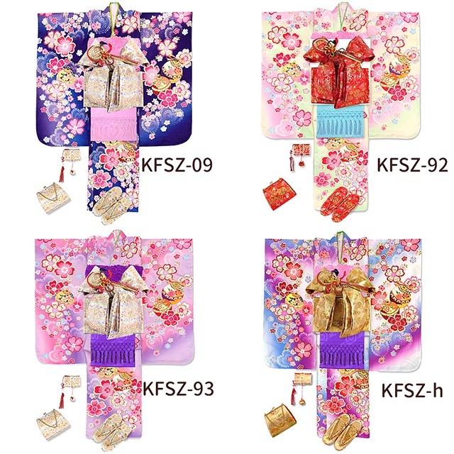 七五三 着物7歳 フルセット 幻想的な柄の四つ身の着物と、結び帯・はこせこ小物がえらべる フルセット【選べる6色】[KFSZset]