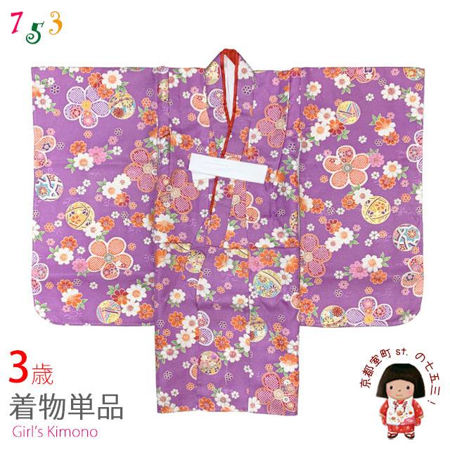 【在庫処分セール!】七五三 3歳 着物 女の子 身上げ・肩揚げ加工済み 襦袢付き 三つ身の着物 単品【薄紫、花柄】[THFM-Ktan]