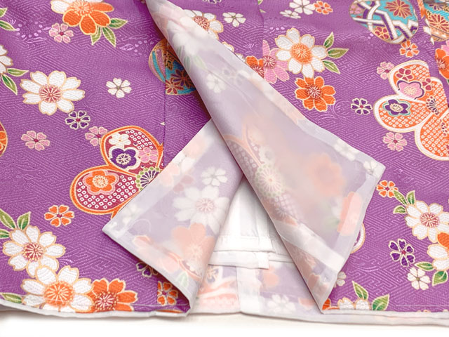 ホーム | 七五三 着物(女の子用) > 七五三 3歳 着物(単品)【在庫処分セール!】七五三 3歳 着物 女の子 身上げ・肩揚げ加工済み 襦袢付き 三つ身の着物 単品【薄紫、花柄】
