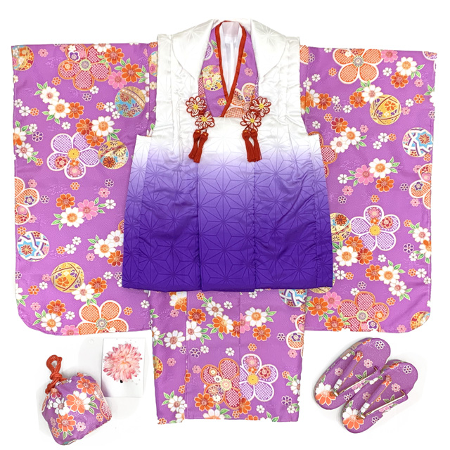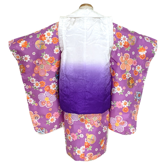 七五三 3歳 着物 セット 女の子 被布セット 古典柄の着物 被布コートセット【紫ぼかし、花柄】[THFMsetT360]
