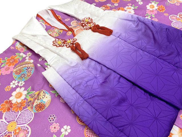 ホーム | 七五三 着物(女の子用) > 七五三 3歳 女の子 着物セット(被布セット)七五三 3歳 着物 セット 女の子 被布セット 古典柄の着物 被布コートセット【紫ぼかし、花柄】