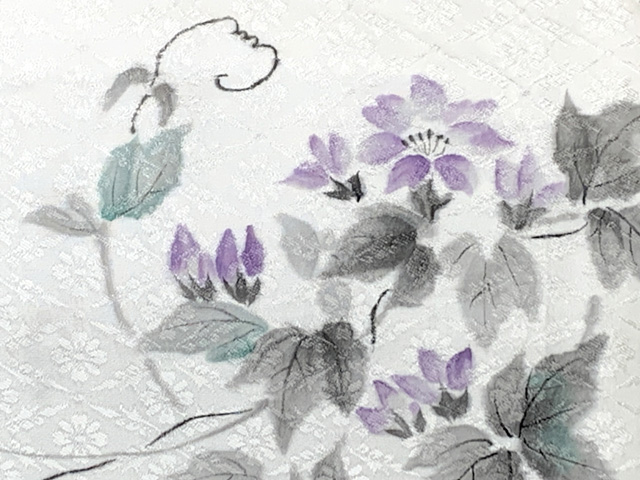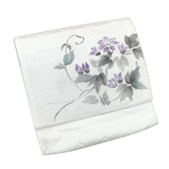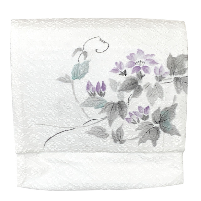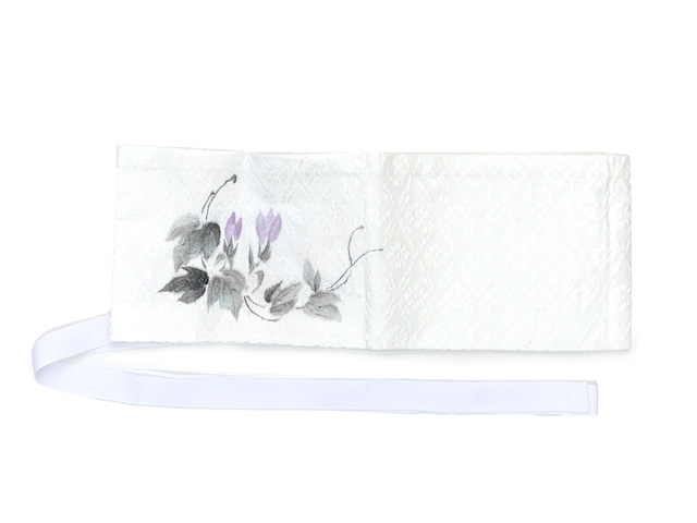 ホーム | 帯 > 作り帯、つけ帯お太鼓 軽装帯 手描き風絵柄 お太鼓結びの付け帯 東レ シルック生地使用 合繊【白系、野花】