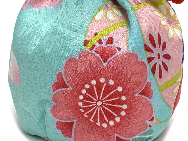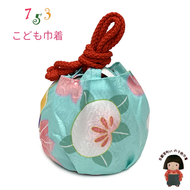 七五三 3歳 女の子 巾着 和柄巾着 こどもきんちゃく 単品【水色、梅と鞠】[OKINtan-2405]