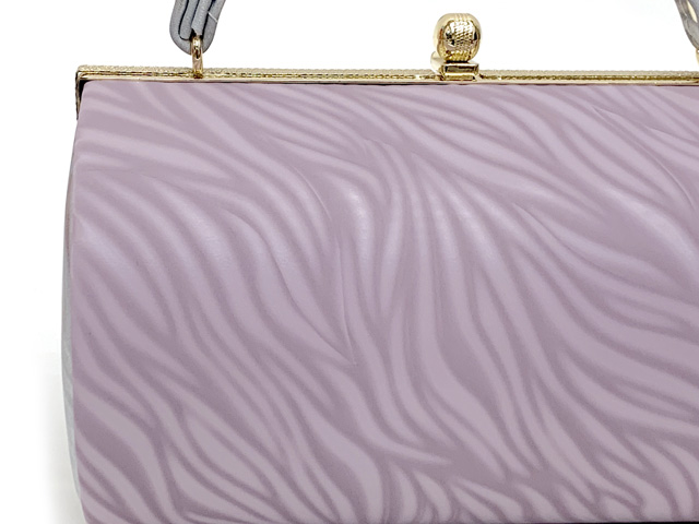 鼻緒やバッグの表地に箔押しされた合成皮革を使用した振袖用草履バッグセットです。