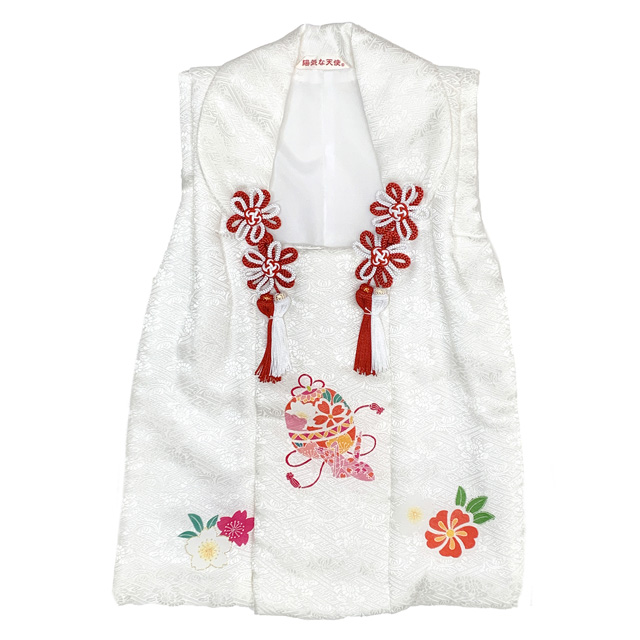 七五三 3歳 女の子 被布セット 正絹被布コート 草履 巾着 足袋 4点コーデセット【白、鈴に折鶴】[HHF174-4set01]
