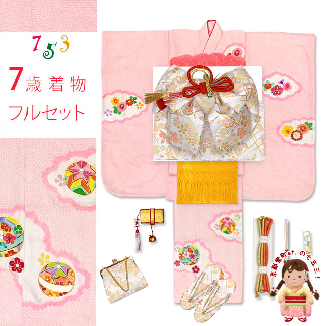 ホーム | 七五三 着物(女の子用) > 七五三 7歳 着物フルセット七五三 着物 7歳 フルセット 正絹 女の子 絞り染 金駒刺繍 絵羽付けの子供着物 コーディネートフルセット【ピンク、束ね熨斗】