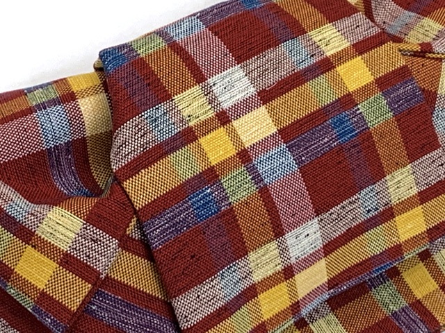 ホーム | 帯 > 作り帯、つけ帯半幅帯 作り帯 リボン返し結び帯 合繊 綿混合生地【赤系、チェック】