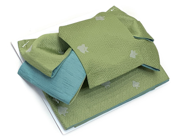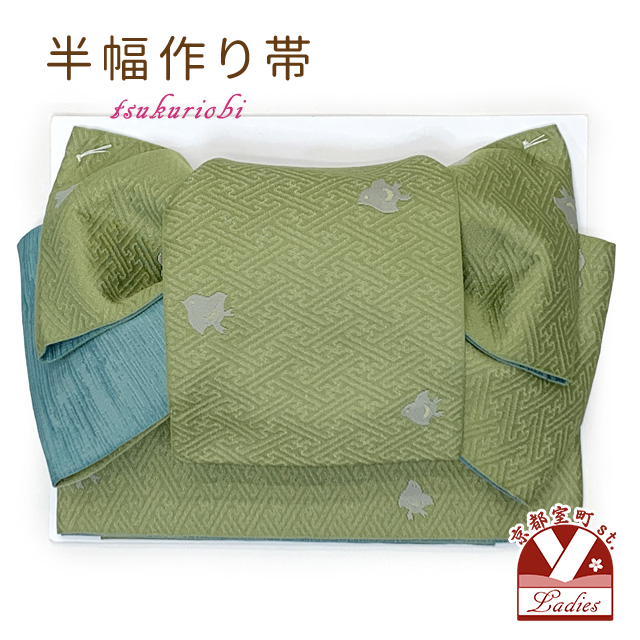 ホーム | 帯 > 作り帯、つけ帯半幅帯 作り帯 リボン返し結び帯 合繊【黄緑系、紗綾がに千鳥】