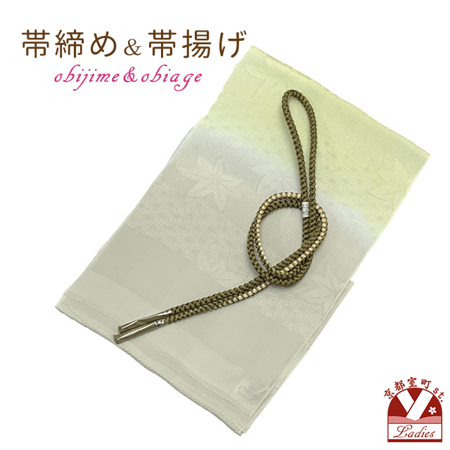 帯揚げ 帯締め セット おしゃれ着に 帯上げ&丸組の帯〆セット 正絹【銀灰xひわ、ぼかし】[OBJ2012]