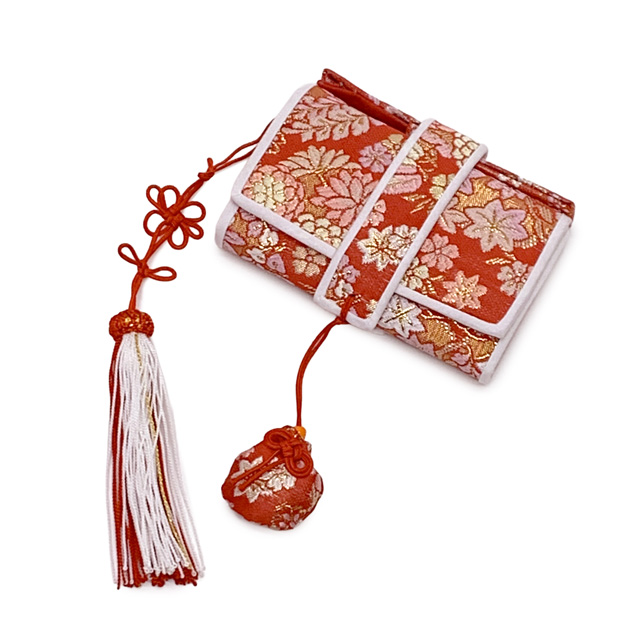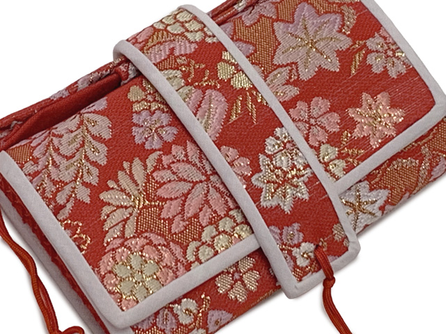 七五三 バッグと筥迫 2点セット 子供用 がまぐちバッグ 合繊【赤、古典花】[IKB596-hk]