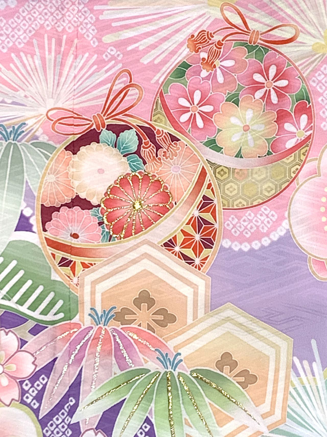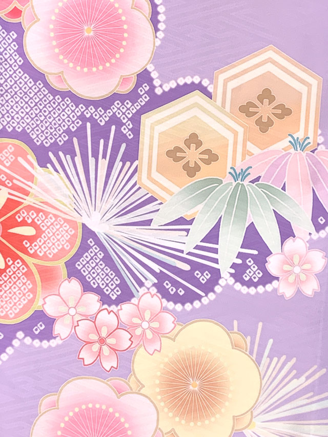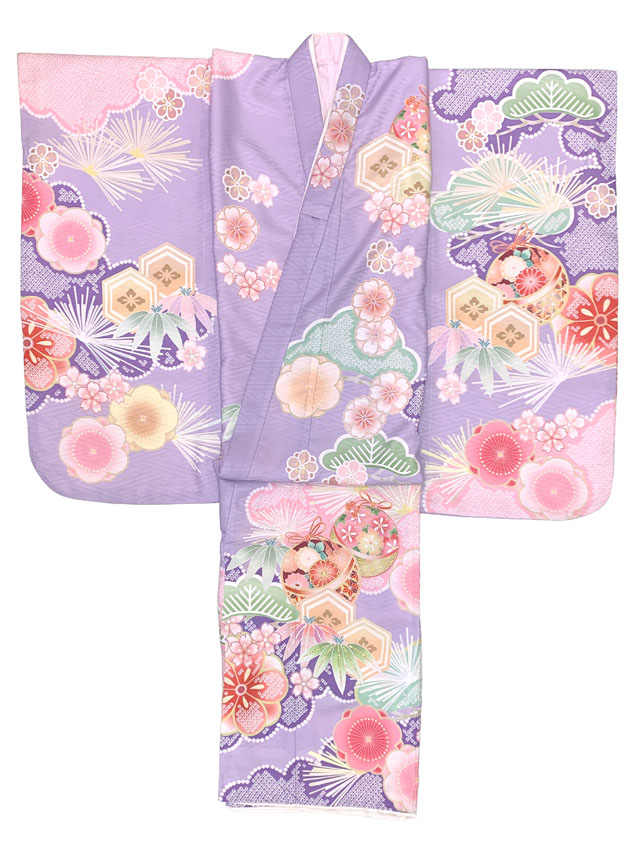 七五三 着物 7歳 女の子 2025年新作 式部浪漫ブランド 絵羽柄の着物 四つ身 子供振袖 単品 合繊【藤色、鞠梅】[SR7pea-2506tan]