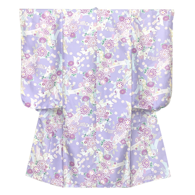 七五三 着物 7歳 女の子用 四つ身の着物と結び帯 他 コーディネート フルセット【薄紫、菊に束ね熨斗】[OYM-A801f19283GM]