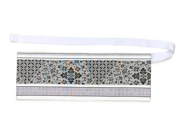 軽装帯 お太鼓結びの付け帯 合繊【白系、線に華様紋】[BNO936]