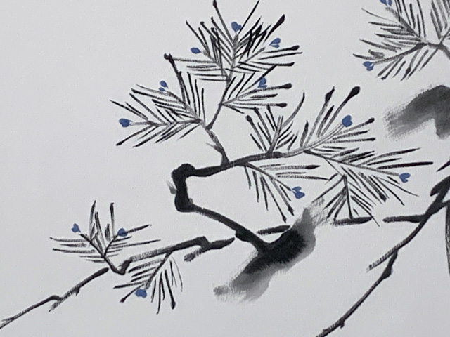軽装帯 お太鼓結びの付け帯 合繊【オフホワイト系、手書き風の松】