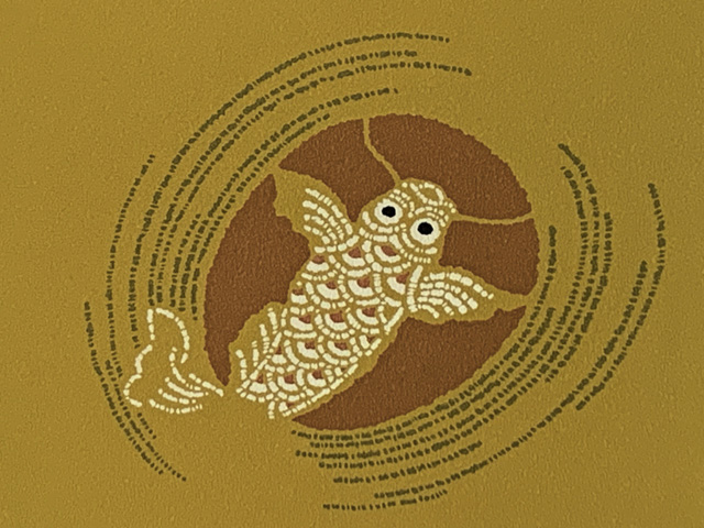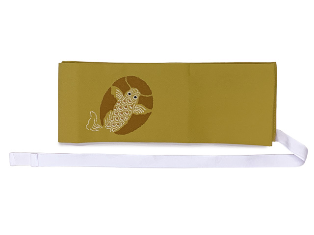 軽装帯 お太鼓結びの付け帯 合繊【金茶系、鯉】[BNO944]
