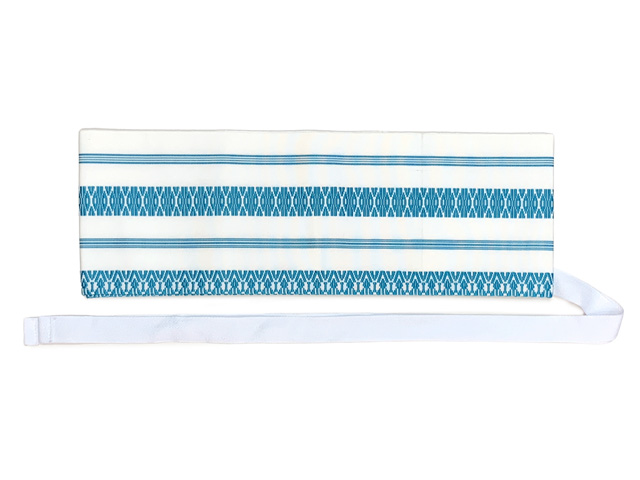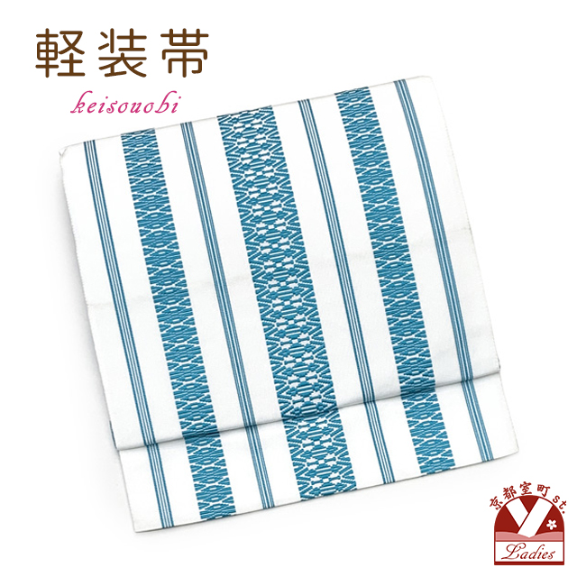 軽装帯 合繊 献上帯 お太鼓 作り帯 お太鼓結び 付帯【白x青緑系】