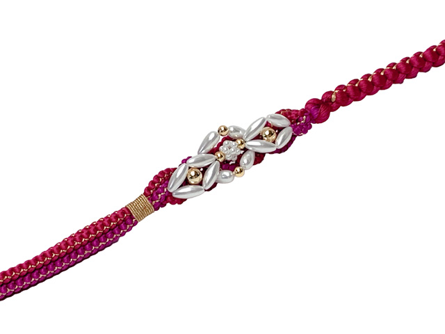 帯締め 振袖用 手組 パールビーズ飾り帯〆(正絹) 成人式 十三参りに【レッド系】[FOJ573]