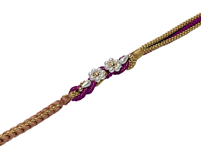 パールビーズの飾りをあしらった、お手頃価格の振袖用の丸組の帯締め(帯〆)です。