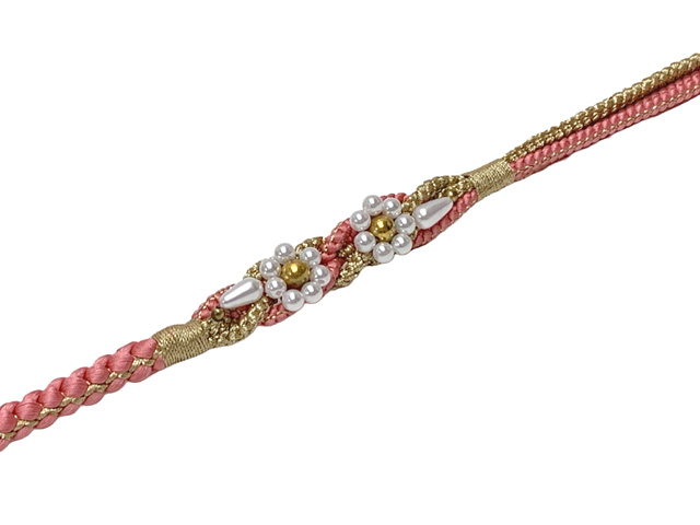 【訳あり商品】帯締め 振袖用 手組 パールビーズ飾り帯〆(正絹) 成人式 十三参りに【ピンクxゴールド】[FOJ589]