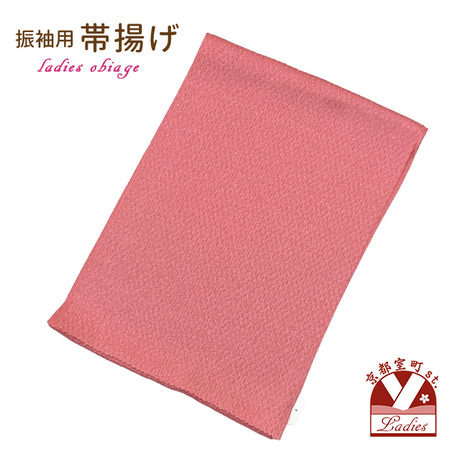 振袖用帯揚げ ふくれ織り 金通し柄 金銀糸入り ポリエステル製【ピンク】[FOB-FK711]