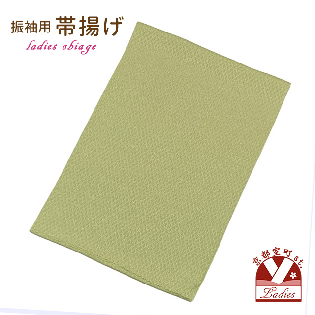 振袖用帯揚げ ふくれ織り 金通し柄 金銀糸入り ポリエステル製【薄抹茶】[FOB-FK716]