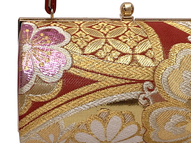 草履バッグセット 振袖用 帯生地使用のバッグと2枚芯の草履 フリーサイズ【レッド&ゴールド】[ZBF2608]