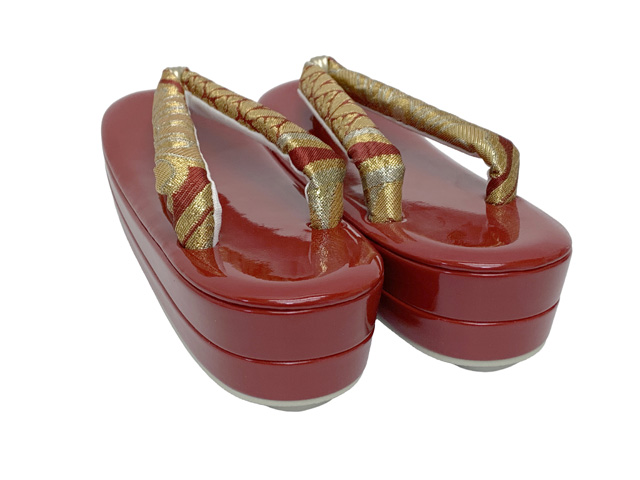 ホーム | 草履、下駄、和装バック > 草履バッグセット草履バッグセット 振袖用 帯生地使用のバッグと2枚芯の草履 フリーサイズ【レッド&ゴールド】