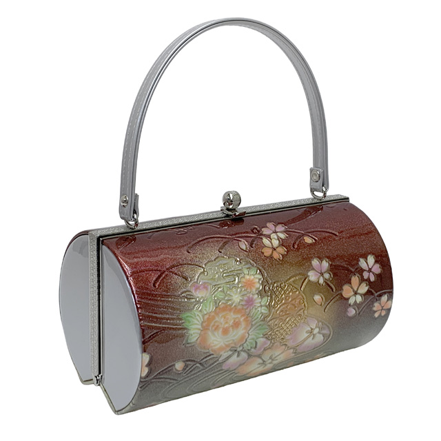 【少し訳あり】草履バッグセット 振袖用 型押し加工のバッグと2枚芯の草履(ヒール5.5cm) フリーサイズ【エンジ系&シルバー、牡丹と芝】[ZBF2611]