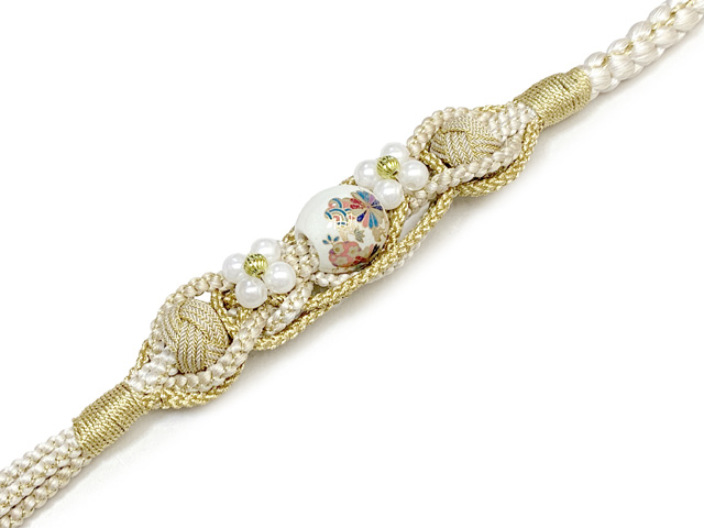 ホーム | 成人式の着物(振袖) > 振袖用 帯揚げ・帯〆振袖用 正絹 帯揚げ 帯締めセット本絞りの帯揚げ 転写玉飾りの振袖用帯〆 セット【白xピンク】